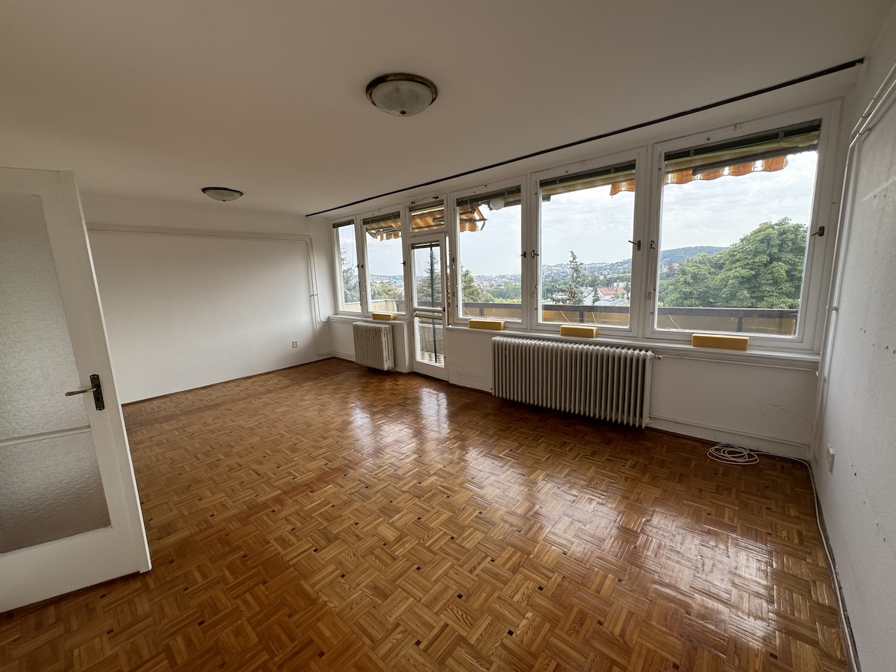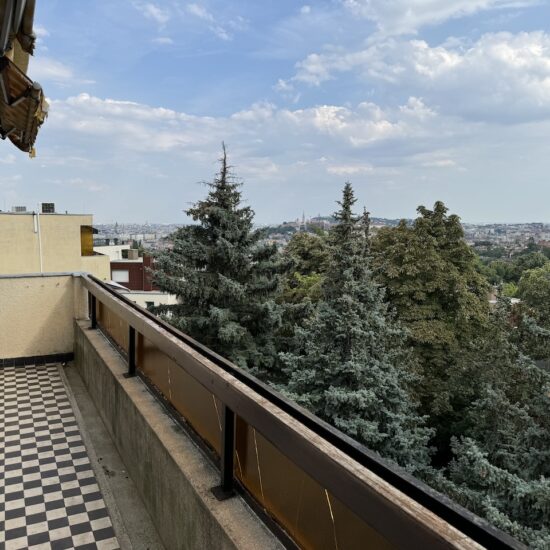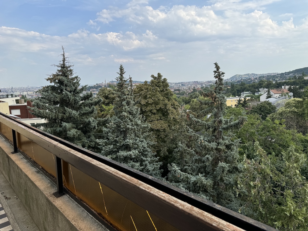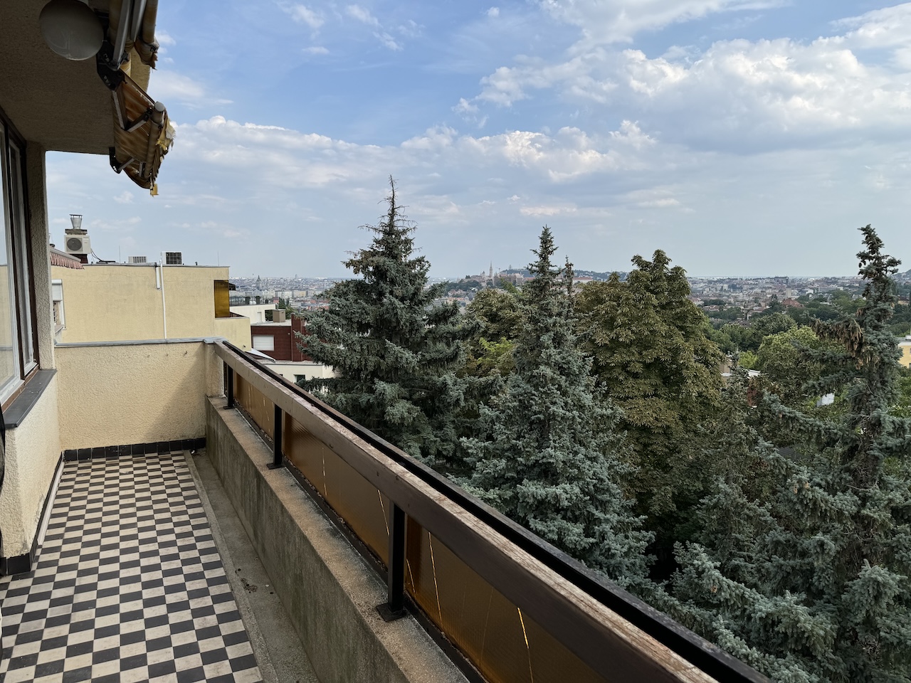 Nappali szobája 25 m2, előtte 7 m2 erkély ahonnan fantasztikus panoráma tárul élén.