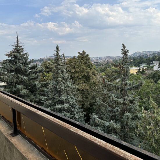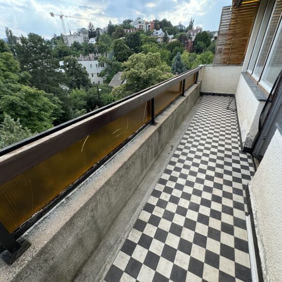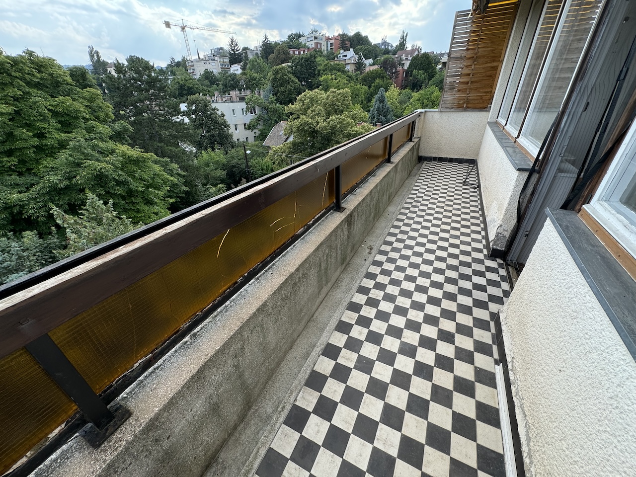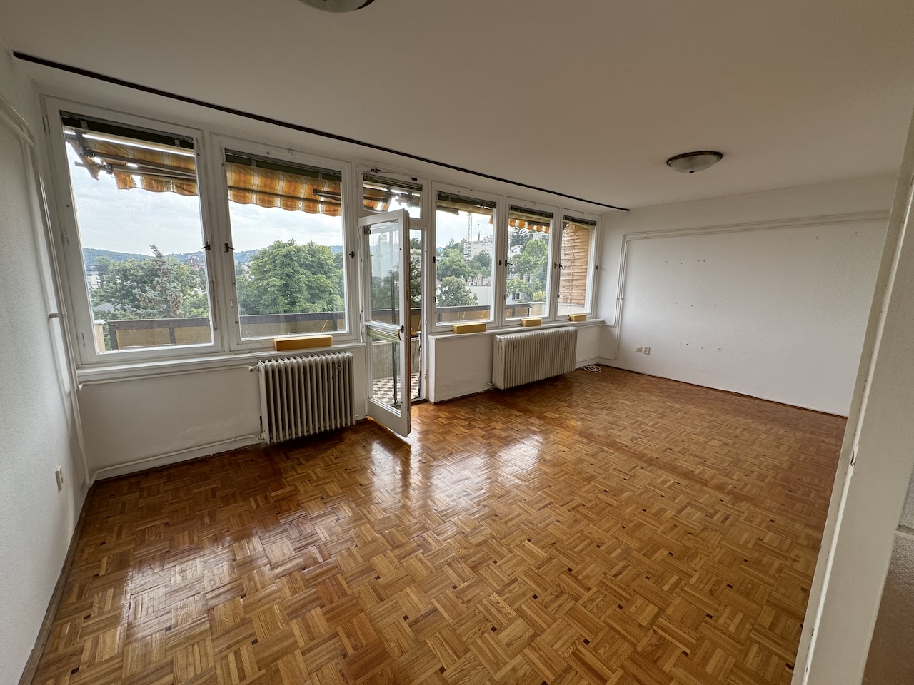 Nappali szobája 25 m2, előtte 7 m2 erkély ahonnan fantasztikus panoráma tárul élén.