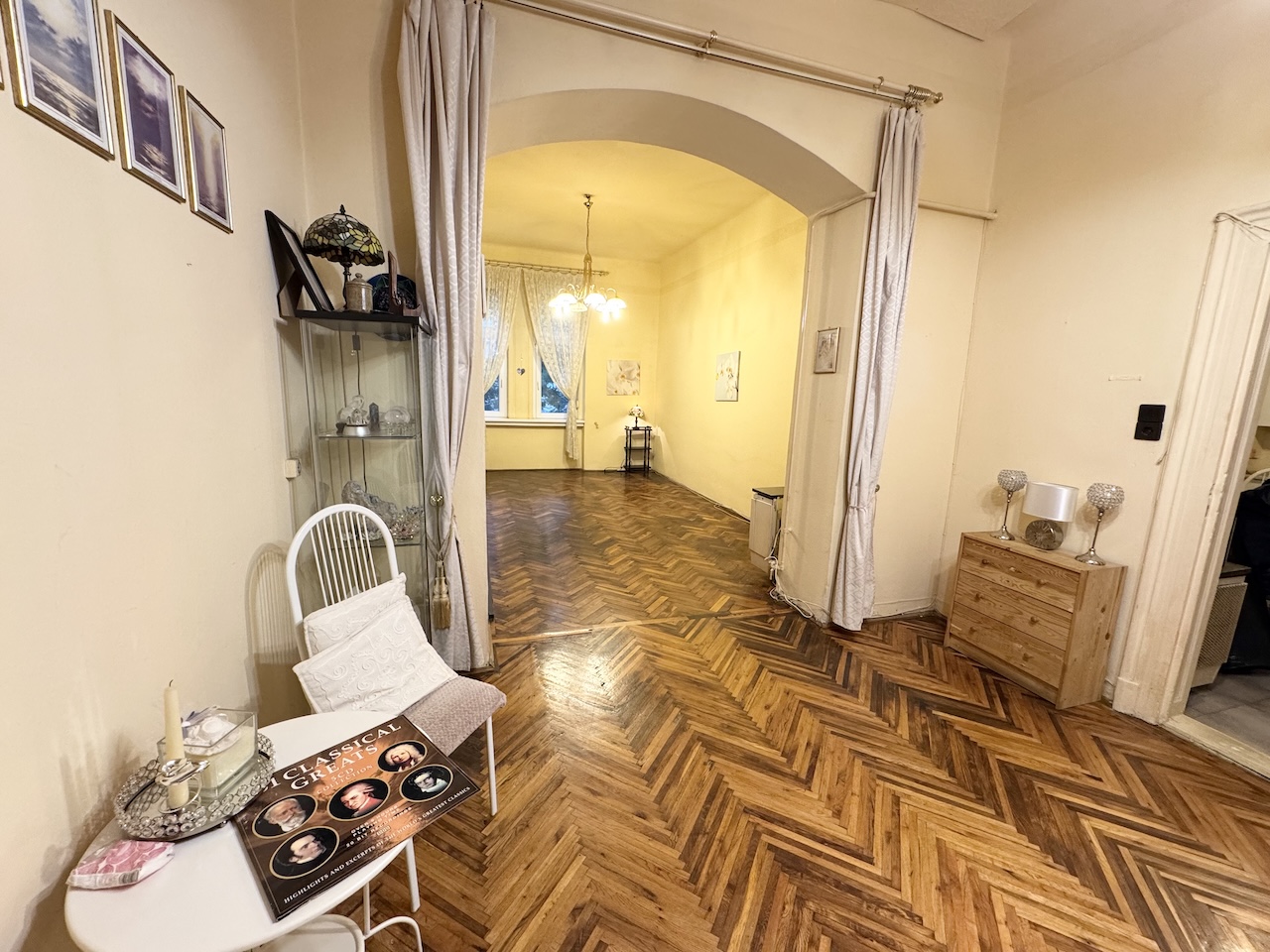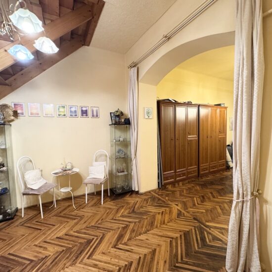 Lakás praktikus beosztású mivel bejárati szinten található az elegáns nagyméretű nappali szoba ami a hallal egybenyitott (33 m2, ) napfényes, utcára néző, jól bútorozható. Családi , baráti összejövetelek számára kiváló.