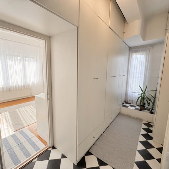 Klasszikus Rózsadombon Bauhaus házban panorámás napfényben úszó eladó lakás